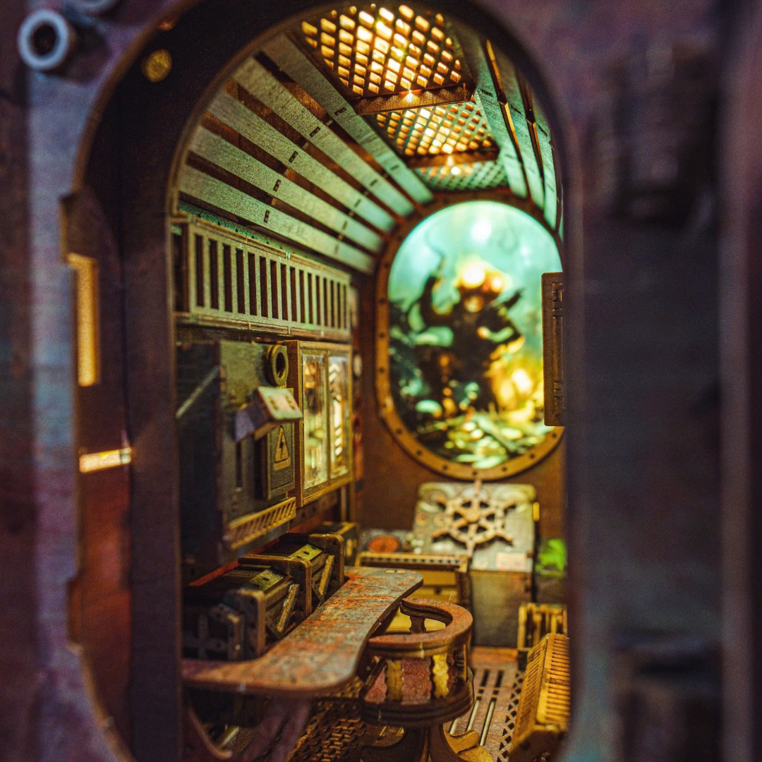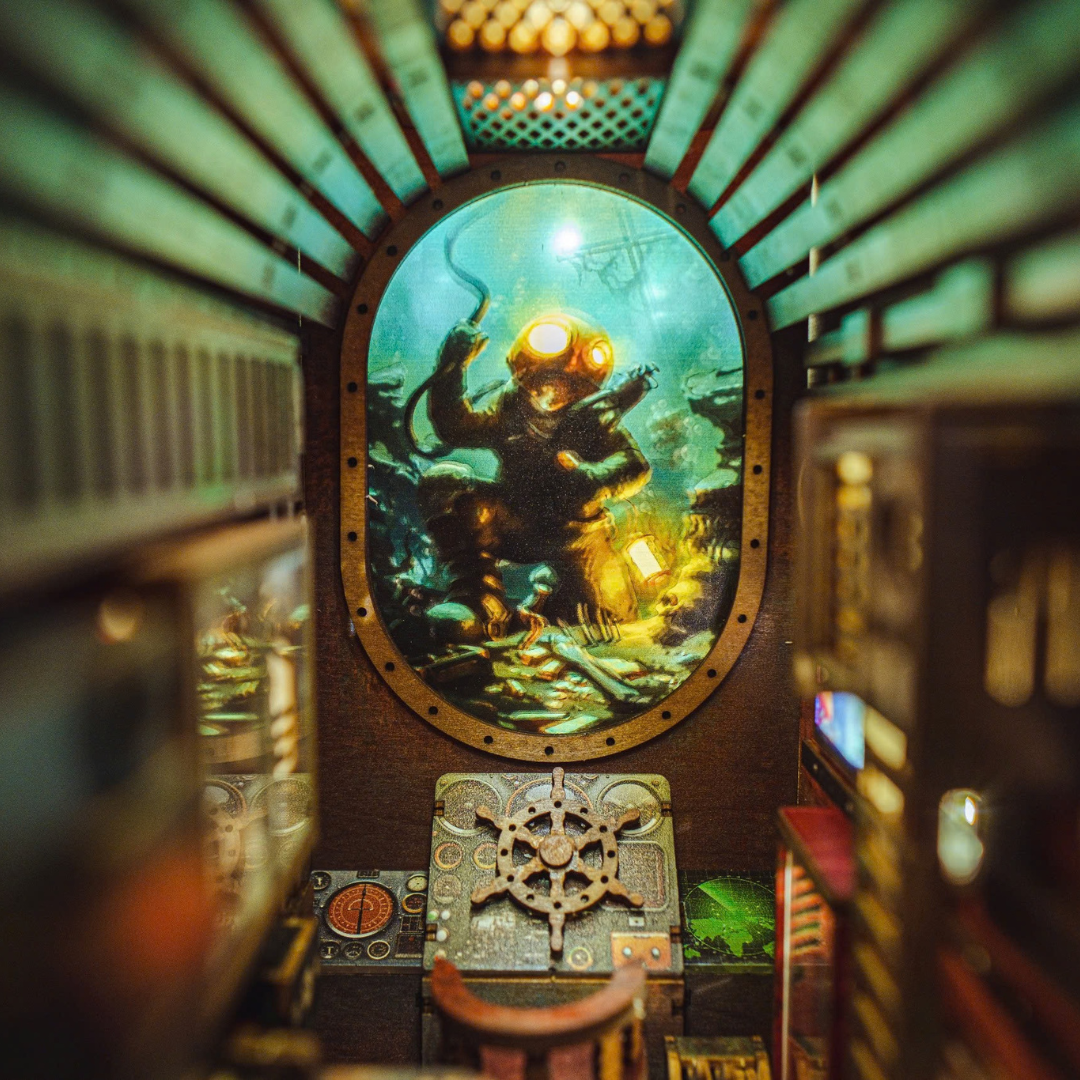 Experience assembling our Abandoned Submarine DIY Book Nook Kit, diving deep into a realistic lost bunker beneath the waters. Featuring a diver peering through the glass window, searching for survivors and remnants.